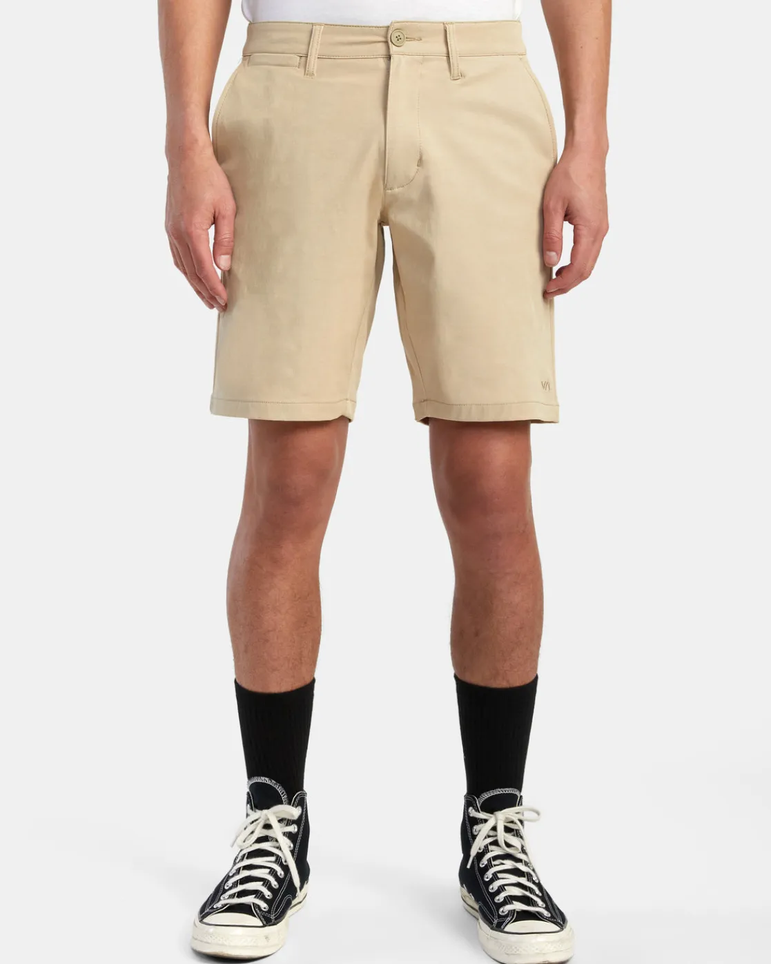Made of 4-way stretch heathered fabric, these 19″ hybrid shorts protect you from the elements with a durable, water-resistant finish. The versatile design features a fly-and-button closure with pockets. Featured here in the Khaki colorway.
