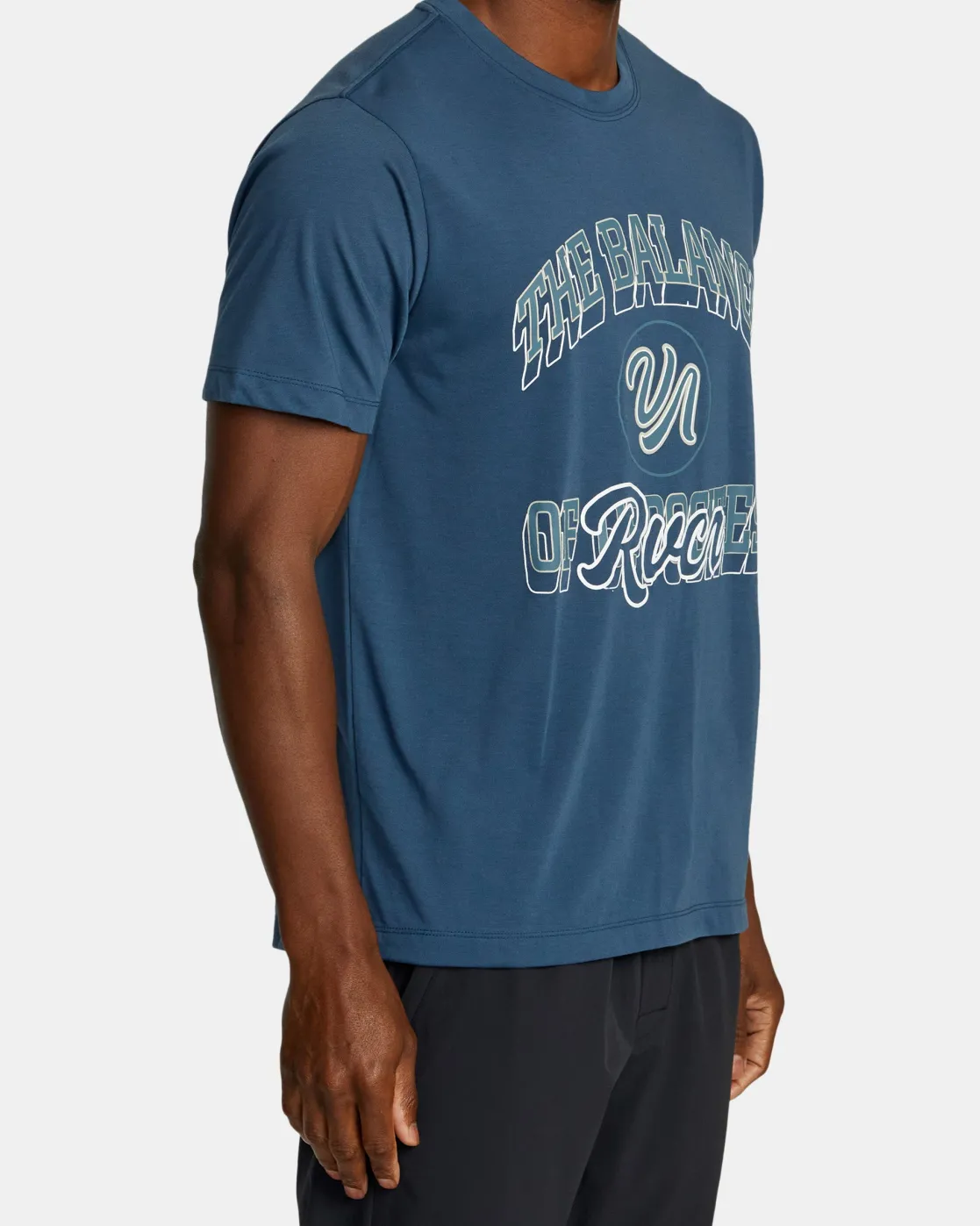 Pair old-school style inspo and modern performance with RVCA’s Balance Raider T-Shirt. Crafted of technical DryRelease fabric offering moisture-wicking comfort, this men’s sport tee features a bold front print and a ribbed crew neck. Featured here in the Petrol Blue colorway.