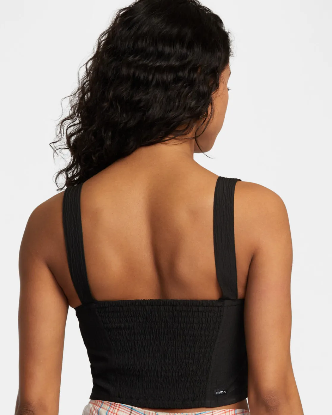 Elevate your style with RVCA’s Bella Smocked Tank, featuring a straight neck and a keyhole tie. Soft and stretchy, this cropped tank top is lined at the bust and features a smocked back to perfectly hug your shape. Featured here in the Black colorway.