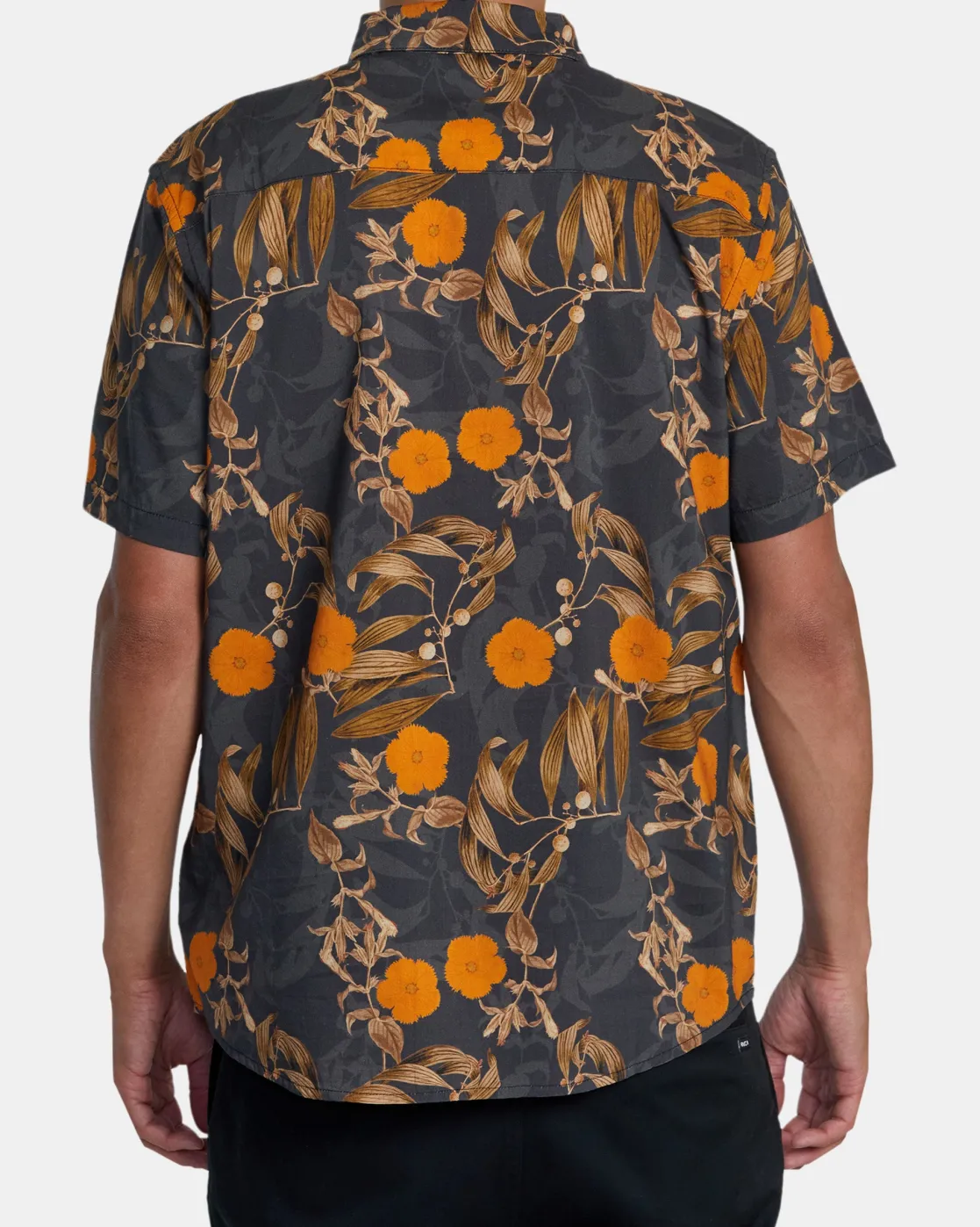 Experience easy summer style with RVCA’s Botanical printed short-sleeve woven shirt. Made from a premium blend of cotton and viscose to keep it feeling soft and light, this regular-fit shirt features a classic collar, a single chest pocket, and a scalloped hem. Featured here in the Black colorway.