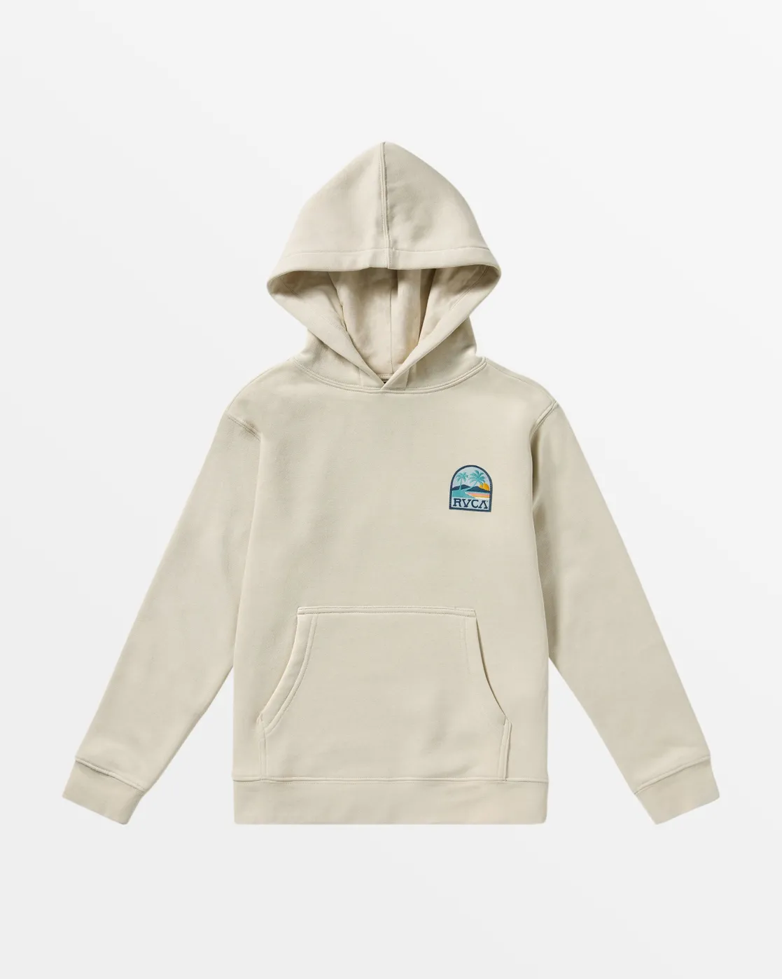 A hoodie built for comfort and style. The Sunny Days pullover features a soft cotton polyester blend fleece, long sleeves, a kangaroo pocket and signature RVCA artwork at the back with a logo hit at the chest. The regular fit and ribbed cuffs ensure quality construction.