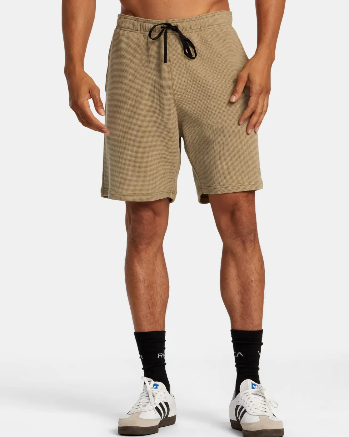 Hit the gym or the streets in RVCA’s C-Able Waffle Knit Shorts, a crossover style made to wear anywhere. Crafted of technical knit in a seamless design, these shorts feature an elastic waist, drawcord closure, side pockets, and a back pocket for convenience. Featured here in the Dark Khaki colorway.