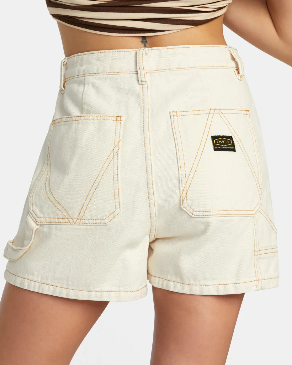 Revamp your wardrobe with RVCA Women’s Dayshift Denim Shorts. Crafted fromcotton denim fabric, these regular-fit shorts feature a zip fly, fixed waist, and button closure. Adding a hammer loop, these shorts take a modern twist on timeless workwear style. Featured here in the Natural colorway.