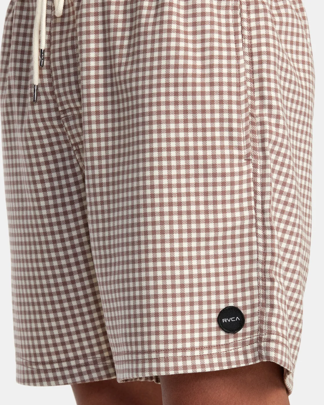 The RVCA Escape Suiting Elastic Walkshorts 17″ give you function, comfort and style in one. Made from yarn-dyed poly viscose stretch, these elastic waist walkshorts feature an adjustable drawcord, faux fly, pockets throughout, triple needle stitching and RVCA logo branding. Featured here in the Pale Mauve colorway.