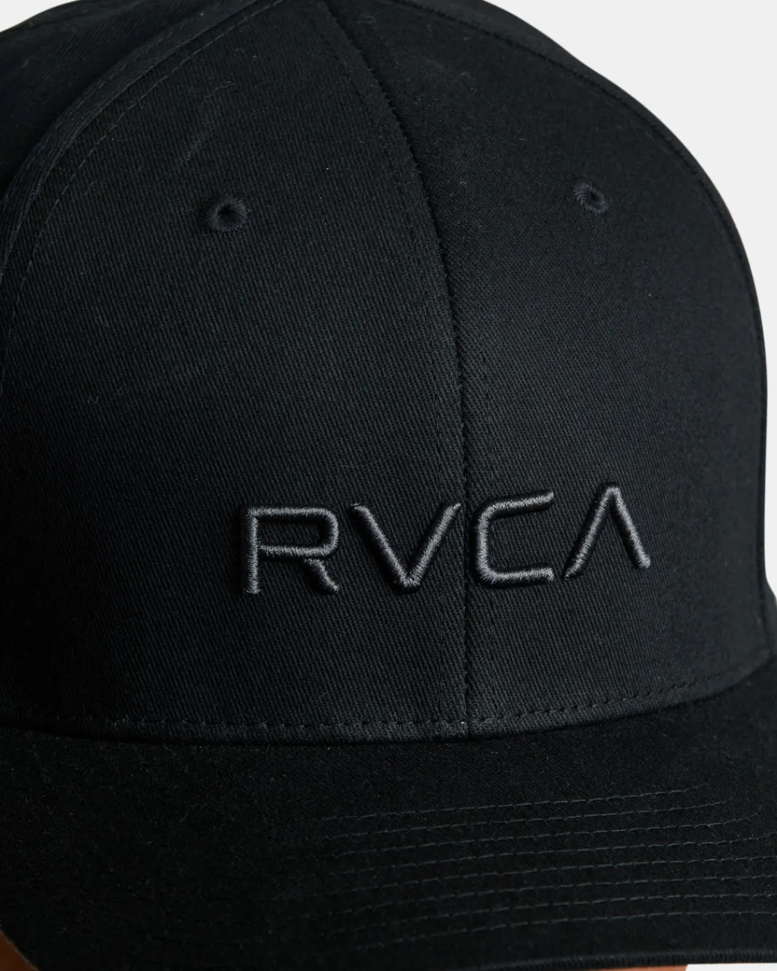 The RVCA Flex Fit hat offers ultimate comfort and protection in one. Made from soft cotton stretch, this flex-fit hat features 6-panel construction with a curved brim for extra coverage from the elements. Topped with RVCA logo embroidery throughout. Featured here in the Black colorway.