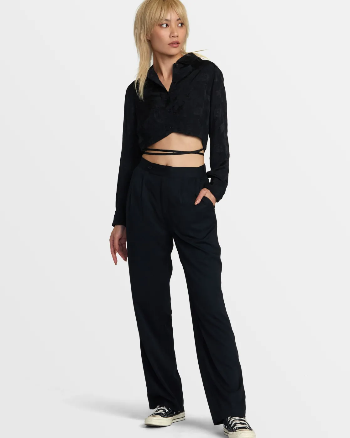 This long-sleeve button-up crop top features a modern silhouette with wrap-around ties you can style multiple ways. Made from a soft viscose blend, the Benjamin Jeanjean x Andrew The Kid Invisible Man top is a statement piece to compliment your unique vibe.