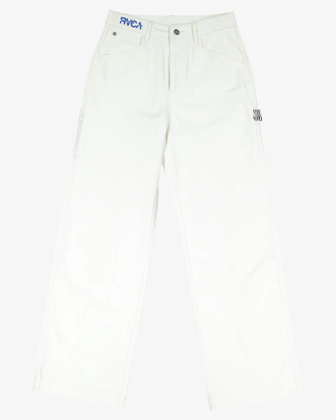 Featuring embroidered artwork from the Elliot Routledge ANP Collection, RVCA Women’s Painters Pants upgrade a timeless workwear style. These straight-leg pants are crafted of pure cotton fabric, featuring a zip fly and button closure and multiple pockets. Featured here in the Eggshell colorway.