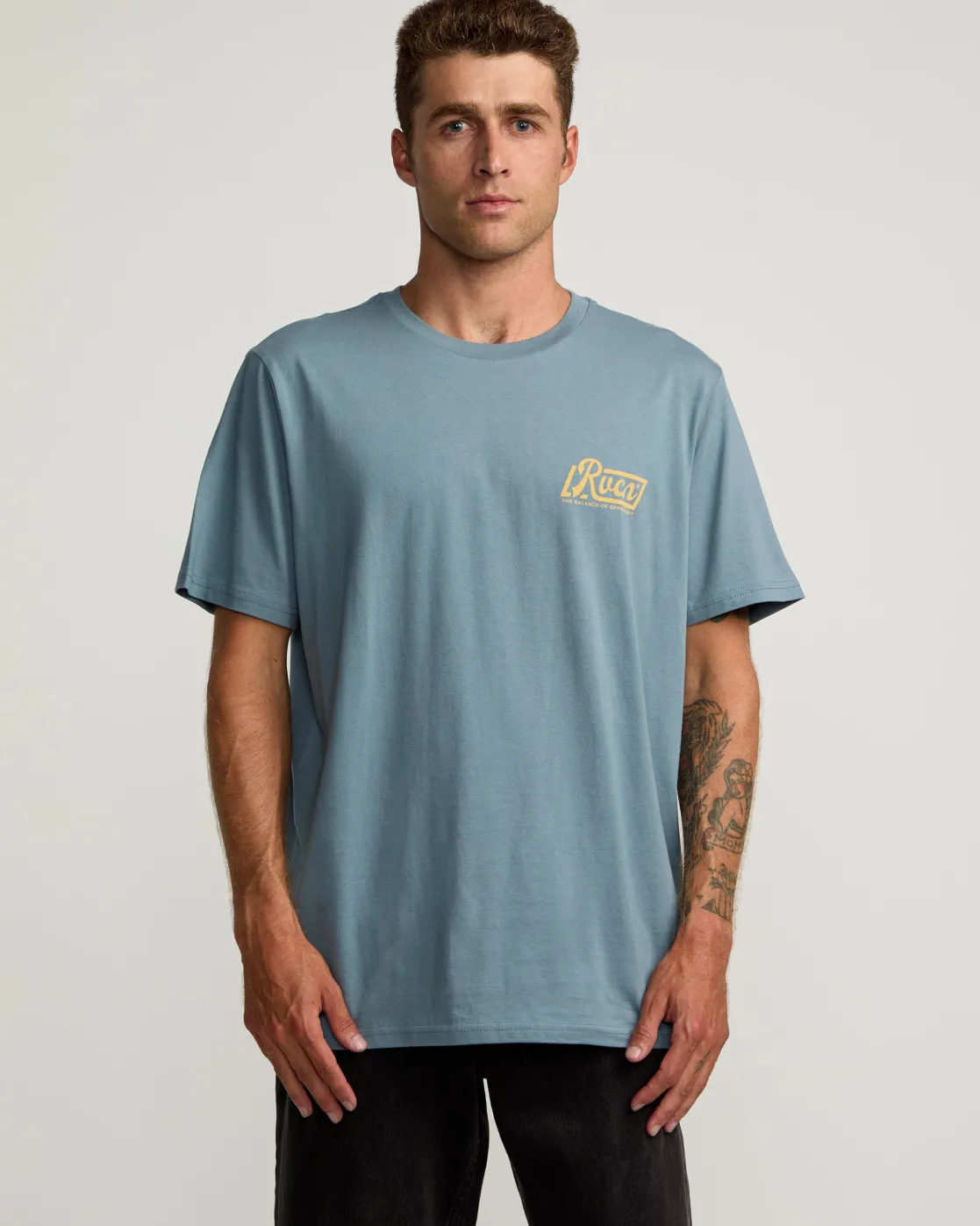 The RVCA Signature Short Sleeve T-Shirt features our iconic look. This soft jersey tee features a front and back screen print on a 100% cotton tee with red stitch detailing.