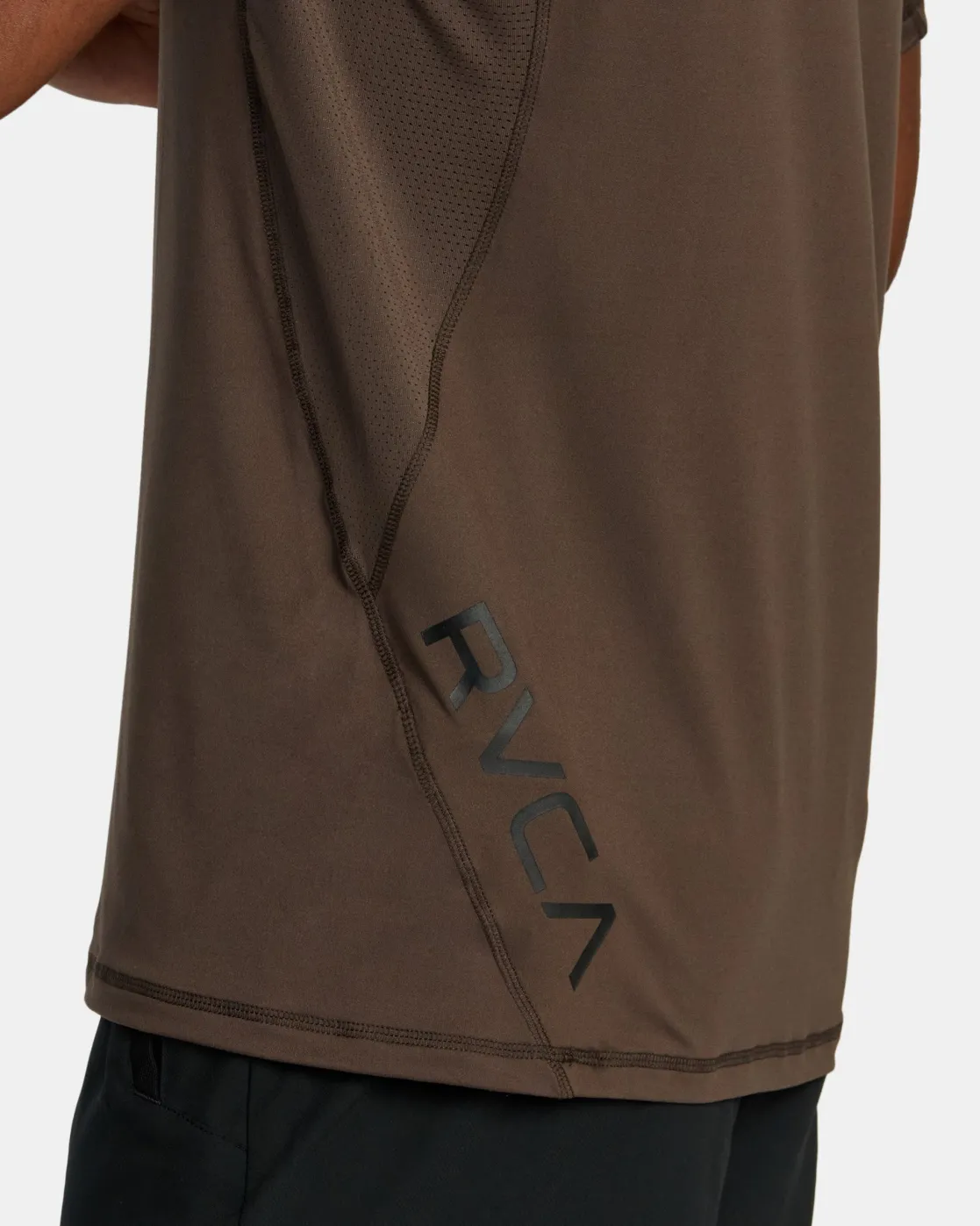 The RVCA Sport Vent Tee combines breathable comfort with effortless style. Made from knit polyester stretch with mesh gussets under the arms, this men’s sport t-shirt features a crew neckline, short sleeves and RVCA logo branding at the front and back. Featured here in the Chocolate colorway.