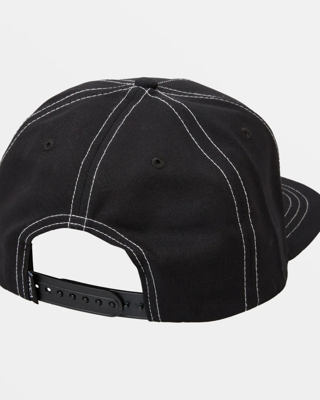 Crafted from breathable organic cotton fabric, the Stitch flat bill hat features subtle RVCA embroidery and a snapback closure that ensures a secure fit whether lounging or skating.