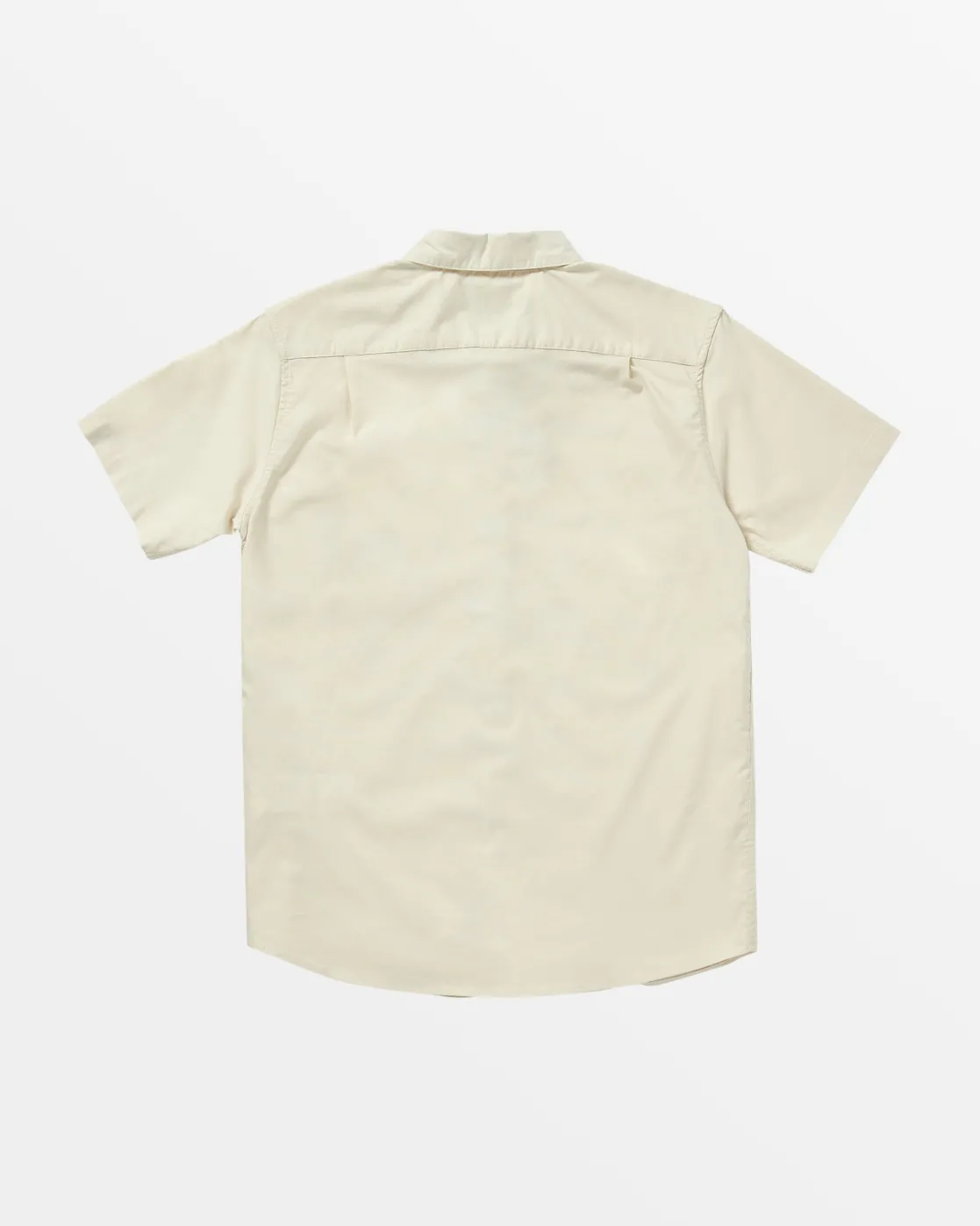 The RVCA That’ll Do shirt puts style and comfort in the game with a slim fit, stretch cotton blend, button down collar, and scalloped hem. Featured here in the Latte colorway.