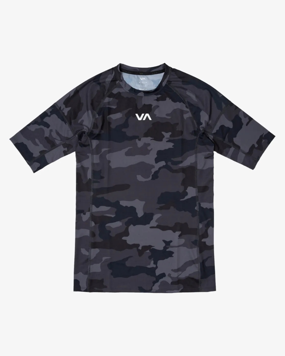In a range of prints and colors with RVCA graphics at the chest, this VA Sport short-sleeve rashguard is crafted of strong and stretchy recycled fabric offering unbeatable comfort and unrestricted mobility. Featured here in the Black Camo colorway.