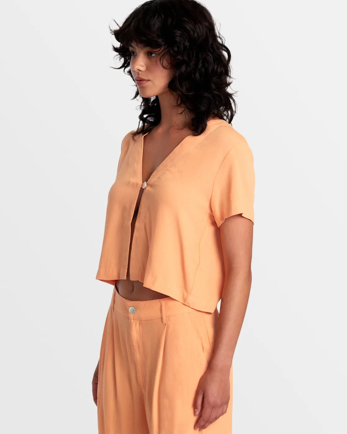 Modern and stylish, the RVCA Vista Top Woven Shirt is crafted fromLivaeco viscose crepe fabric to keep it feeling airy and light. The flowy fit is styled with a W-neck, short sleeves, and a single shell button closure. Featured here in the Copper Tan colorway.