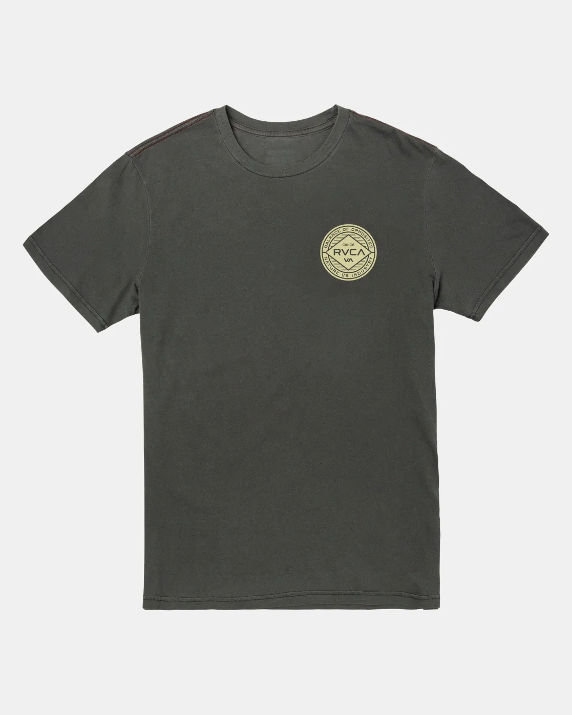 The Wordmarks slim-fit RVCA t-shirt has short sleeves and a crew neck for a classic look. Made from soft, lightweight cotton jersey fabric with a vintage wash and red stitch detailing, it features screen logo graphics on the front and back for an understated style. Featured here in the Pirate Black colorway.
