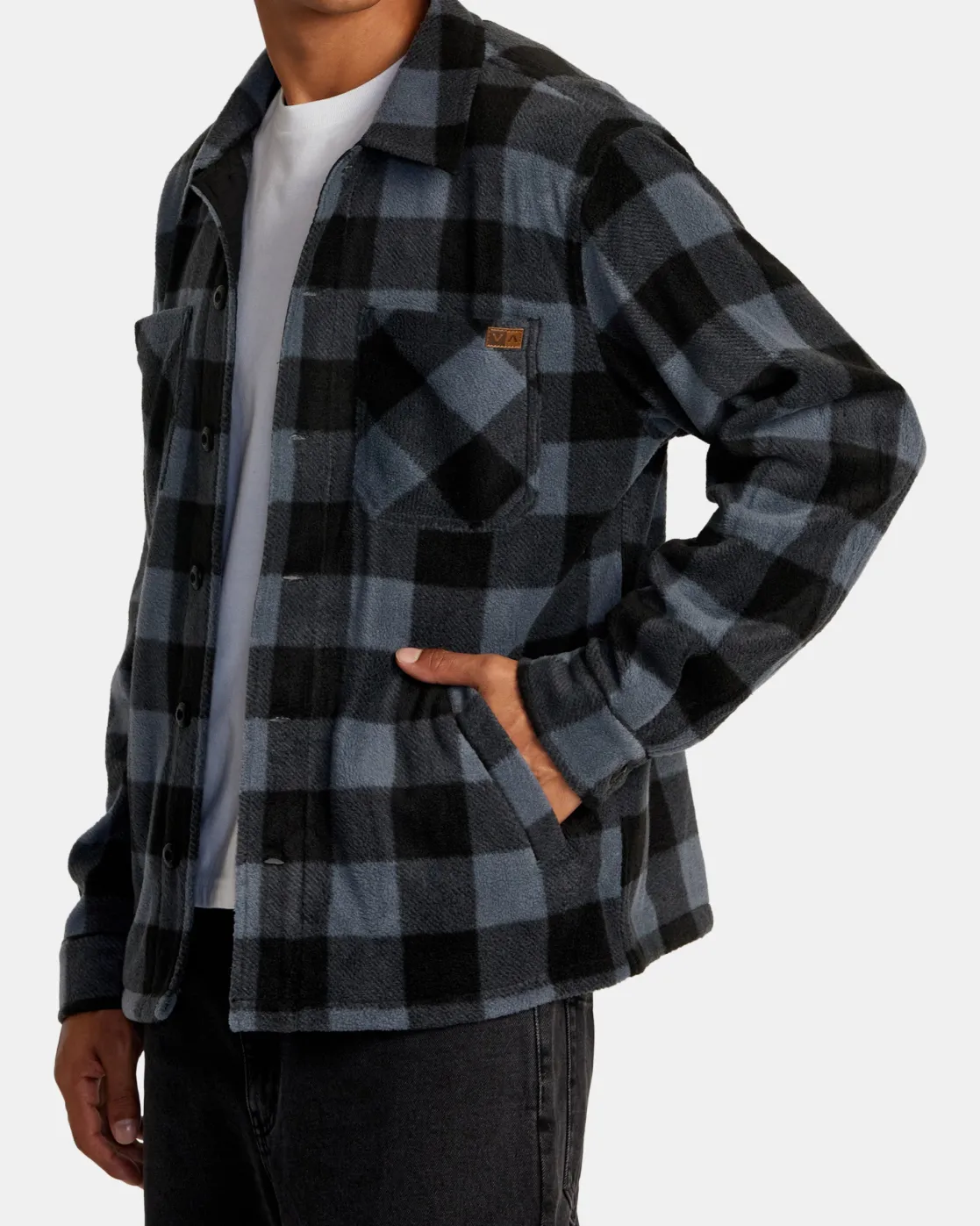 The RVCA Yukon Hi Pile Fleece Shirt Jacket offers unbeatable comfort and style in one. Made from soft poly fleece and featuring an allover print, this shirt jacket is built with a front button closure, long sleeves, button cuffs, pockets throughout and woven RVCA branding. Featured here in the Garage Blue colorway.
