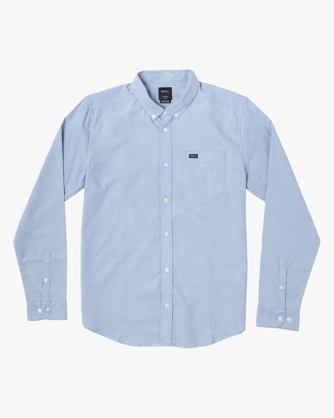 The RVCA That’ll Do button-down long-sleeve shirt for boys features a slim fit, collar neck, single chest pocket with brand label, and stretchy cotton blend fabric that will have him ready for the school day or weekend adventures ahead.