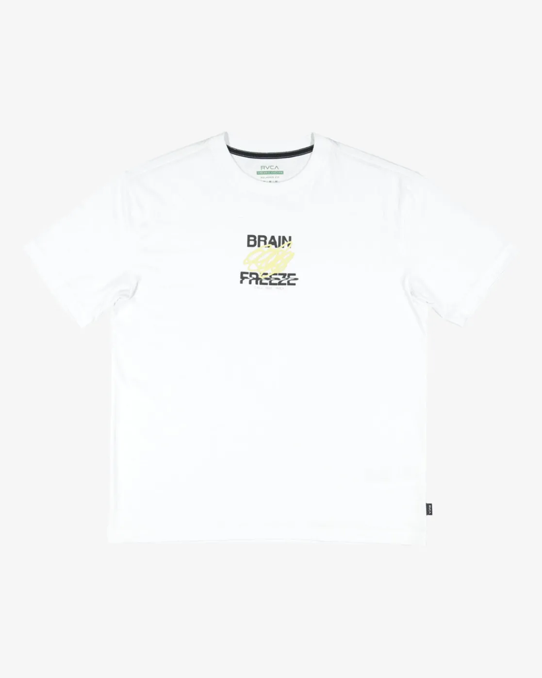 Up your daily style with RVCA’s Brain Freeze T-Shirt. Crafted of mid-weight organic cotton fabric for a quality look and feel, this Elliot Routledge ANP Collection crew neck tee offers a relaxed fit with a custom artwork graphic at the chest. Featured here in the White colorway.
