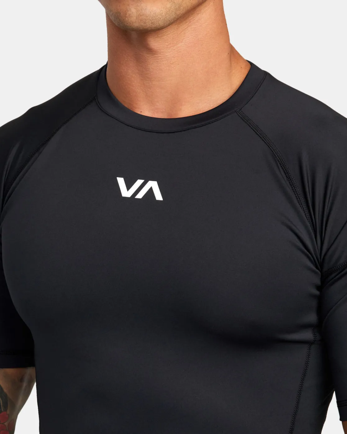 Made of 4-way stretch recycled fabric, this VA Sport technical compression top is antimicrobial and moisture-wicking to keep you feeling fresh and dry while you train. Featured here in the Black colorway.