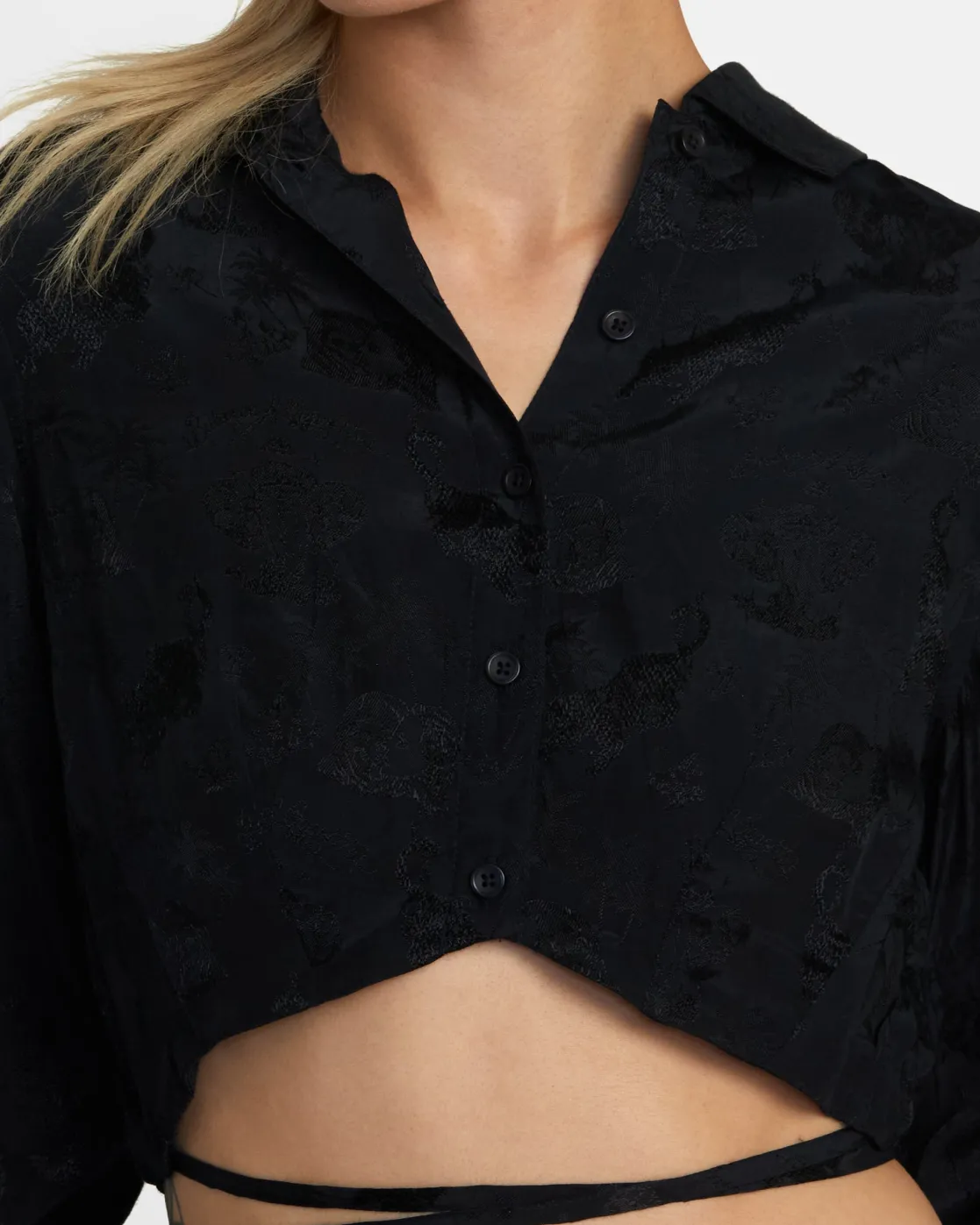 This long-sleeve button-up crop top features a modern silhouette with wrap-around ties you can style multiple ways. Made from a soft viscose blend, the Benjamin Jeanjean x Andrew The Kid Invisible Man top is a statement piece to compliment your unique vibe.