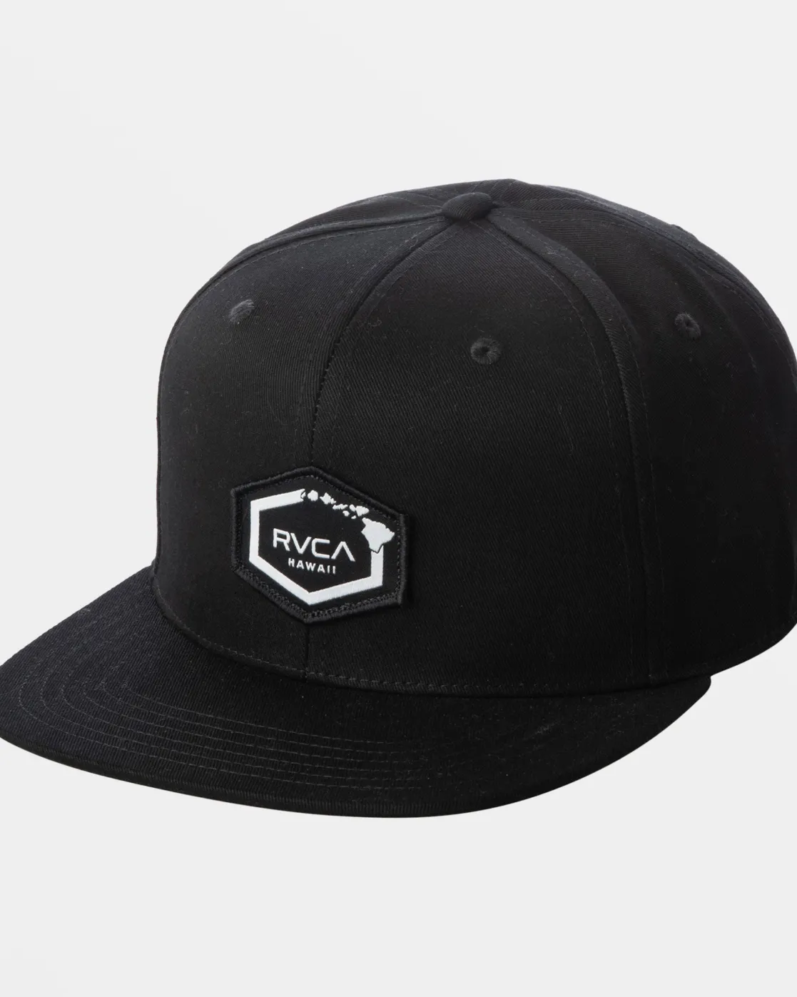 The RVCA Island Hex Snapback Hat offers comfort, style and function in one. Made from soft cotton twill with a structured front, this men’s 5-panel hat features RVCA Island Hex patch at the front, an adjustable snapback closure and flag label at the back. Featured here in the Black colorway.