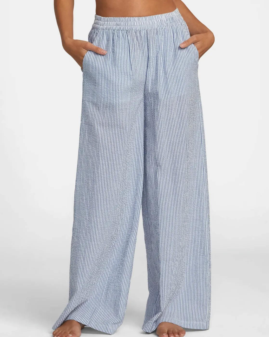 Experience the ultimate comfort and style with RVCA’s New Yume Wide Beach Pant. Made from lightweight cotton seersucker, these relaxed, wide-leg pants feature an elastic waist for a perfect fit. Featured here in the Coronet Blue colorway.