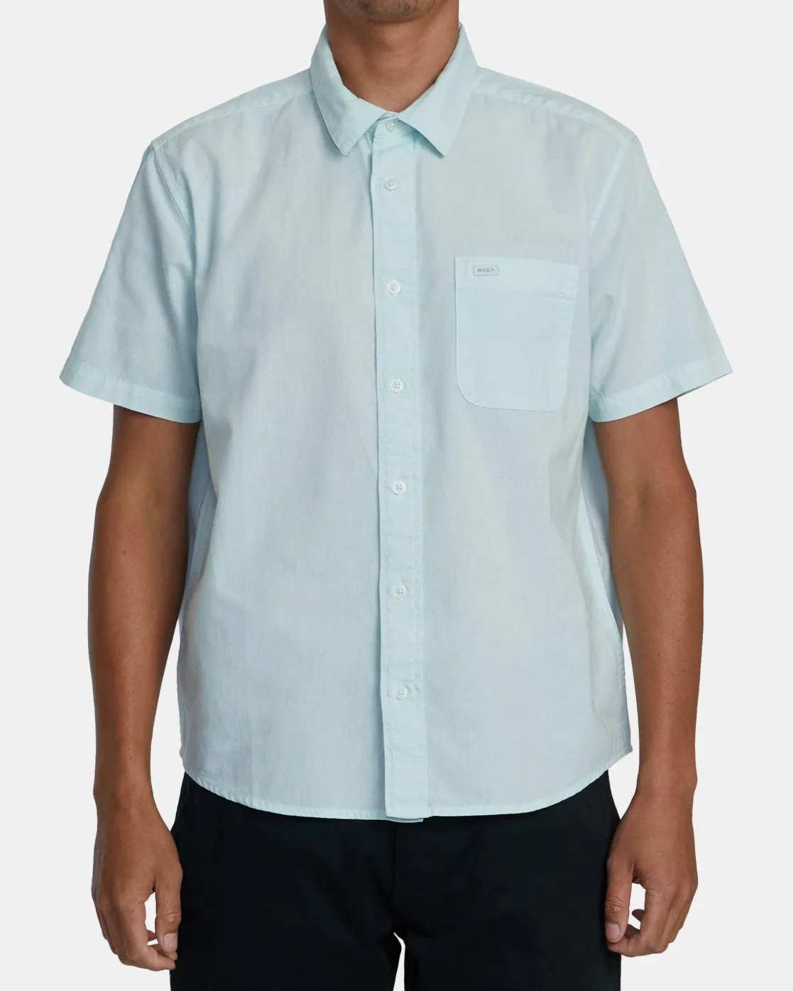 Incredibly soft and comfy from day one, RVCA’s PTC II short-sleeve woven shirt is made of airy cotton gauze and specialty dyed for a well-worn look. This button-up men’s shirt features a collar neck, a single chest pocket, and a scalloped hem. A subtle RVCA solo label adds an elevated finish. Featured here in the Light Blue colorway.