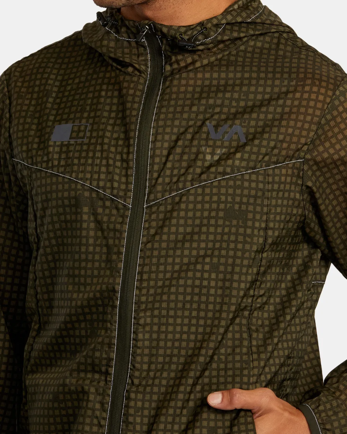 Made of durable nylon fabric, this VA Sport zip-up jacket features side pockets and strategic paneling for better movement. An ideal lightweight layer for chilly morning runs. Featured here in the Camo colorway.