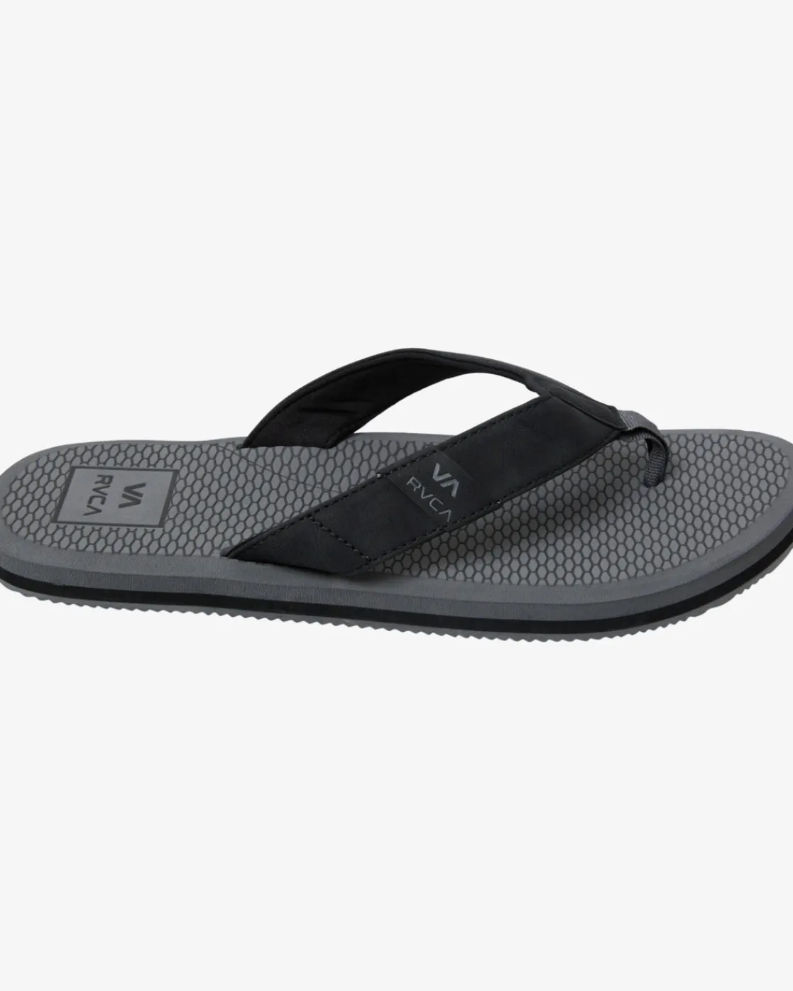 Elevating your warm-weather look with faux-leather straps, these Perennial Collection flip flop sandals have a padded footbed and a durable yet lightweight outsole. Featured here in the Charcoal colorway.