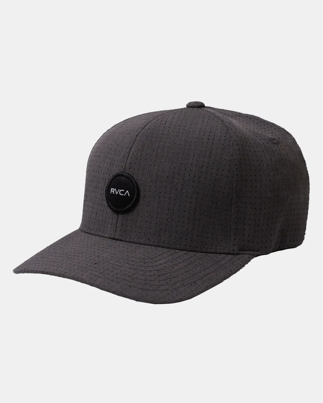 The RVCA Shane Flexfit Hat offers ultimate comfort and protection in one. This 6-panel hat is made from a premium blend of recycled dobby fabric with a demi curved brim, RVCA patch at the front and VA embroidery at the back. Featured here in the Charcoal colorway.