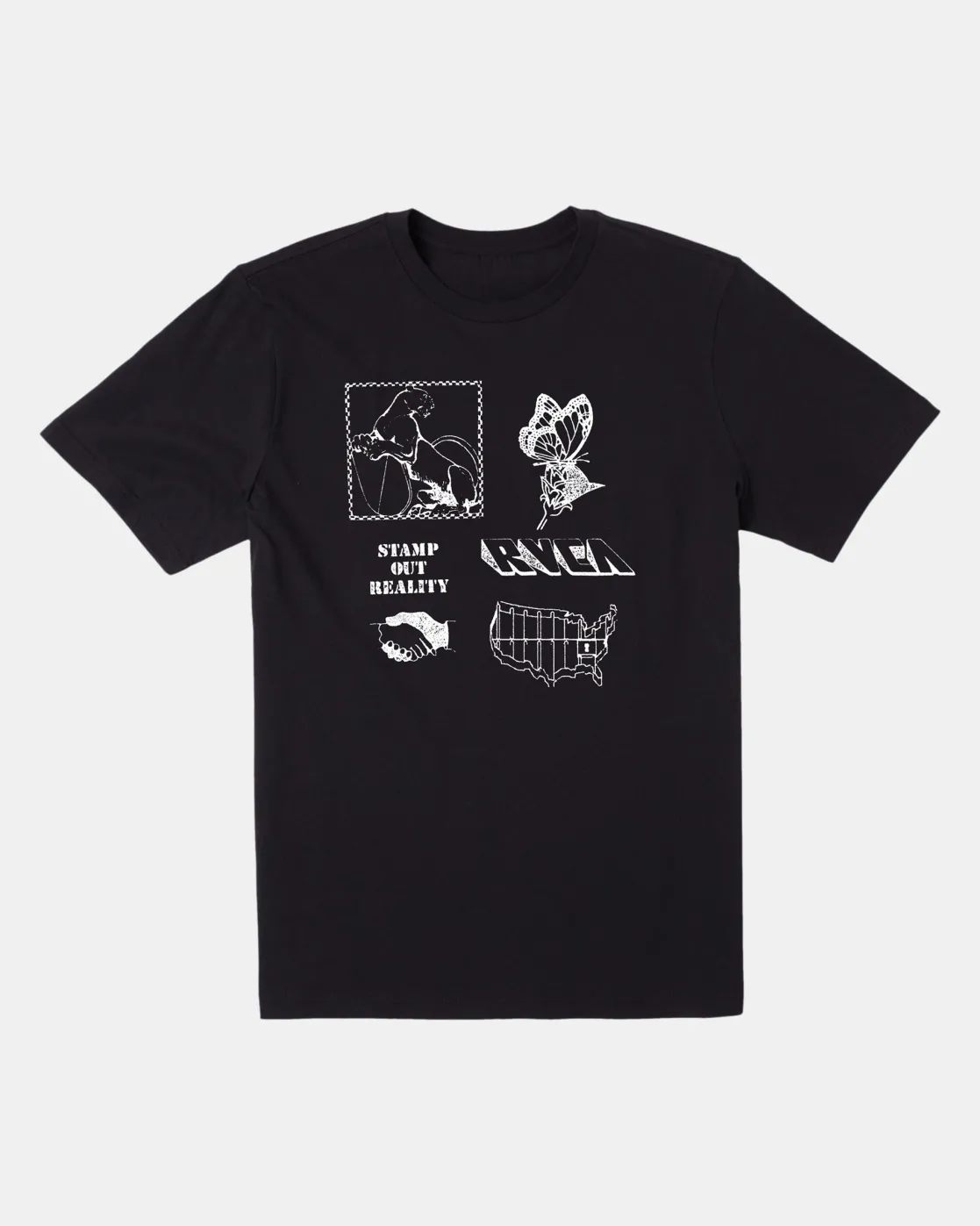 Balance your yin and yang with RVCA’s Stamp Out T-Shirt. Crafted of soft combed cotton, this classic crew neck tee offers a regular fit with graphic art at the chest. Featured here in the Black colorway.