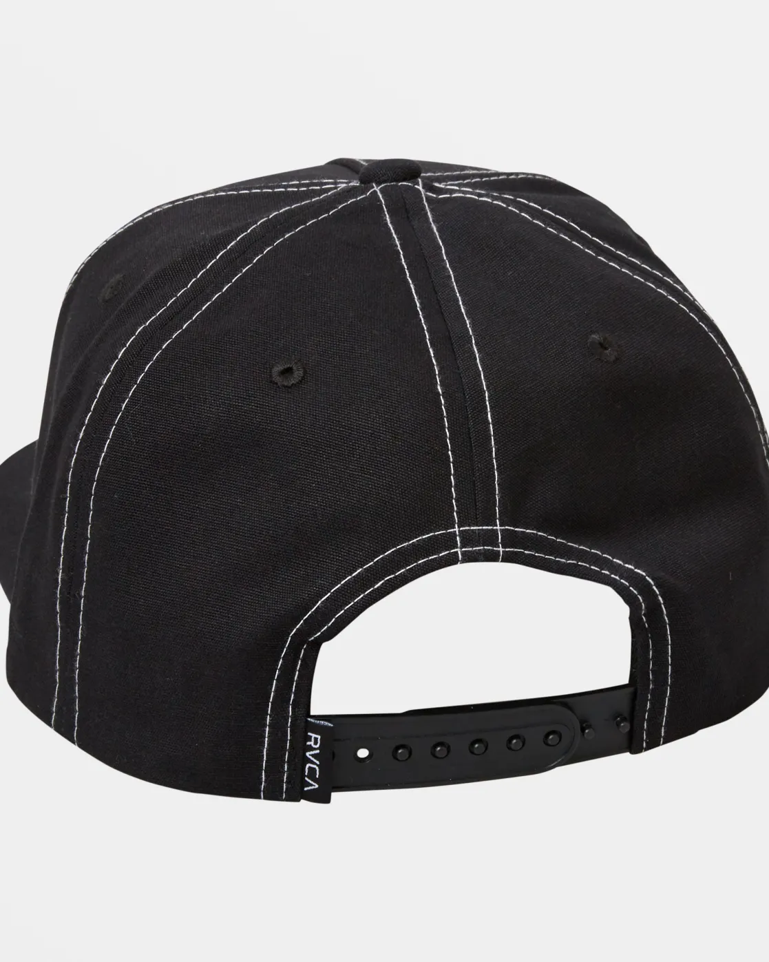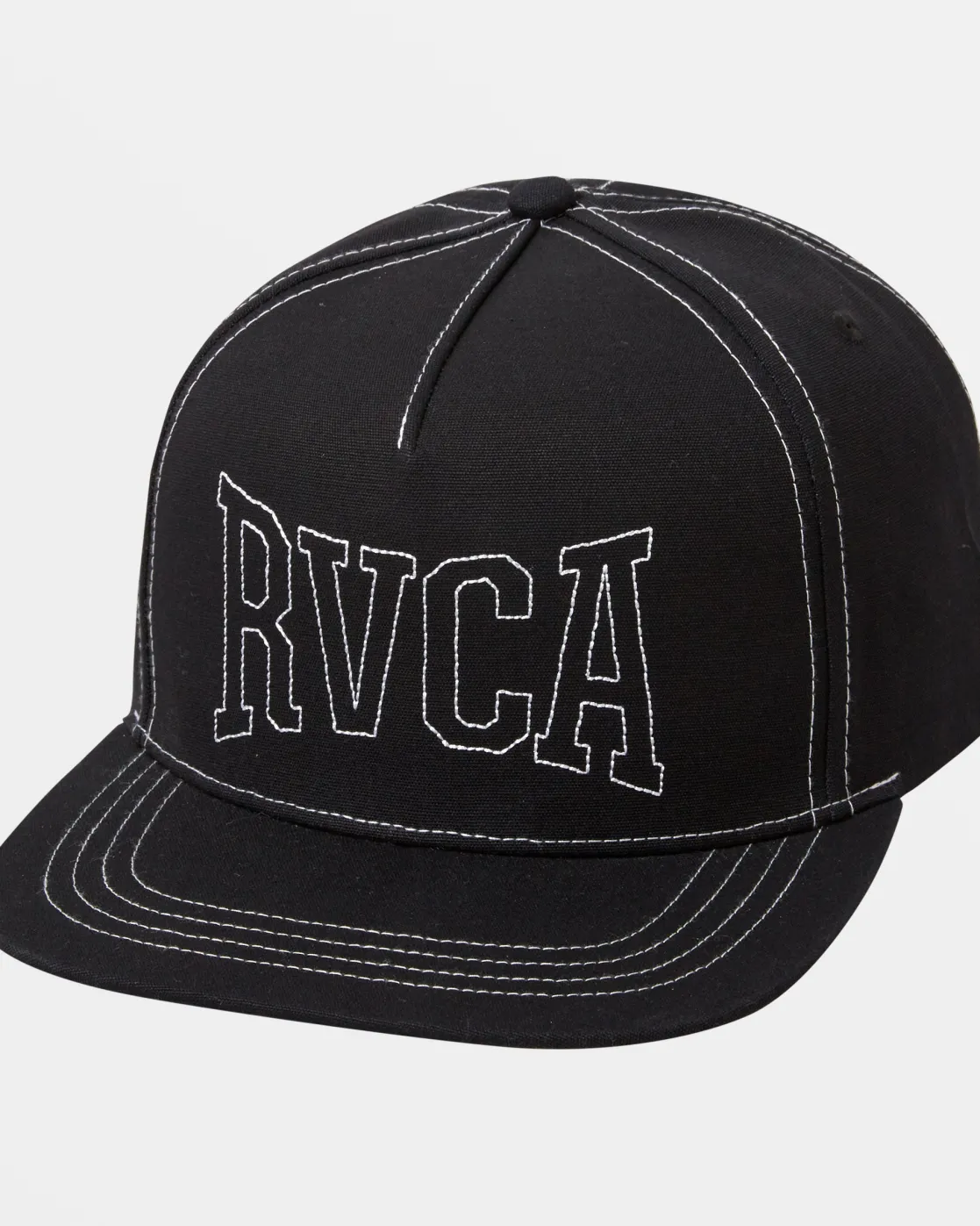 Crafted from breathable organic cotton fabric, the Stitch flat bill hat features subtle RVCA embroidery and a snapback closure that ensures a secure fit whether lounging or skating.