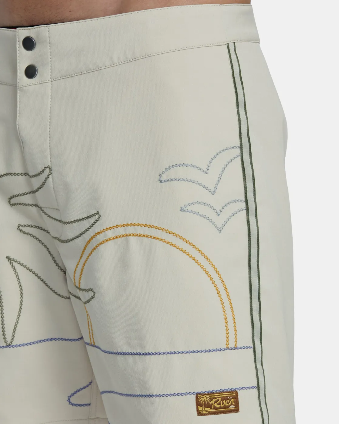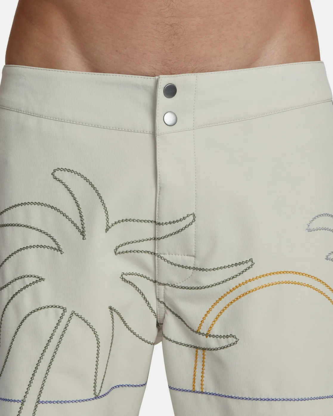 Style out your next surf trip with RVCA’s Sunset Exotica Boardshorts. Crafted of blended corduroy stretch fabric for luxe texture and superior comfort, these 17″ surf trunks feature a double snap closure, embroidered artwork and signature branding. Featured here in the Natural colorway.