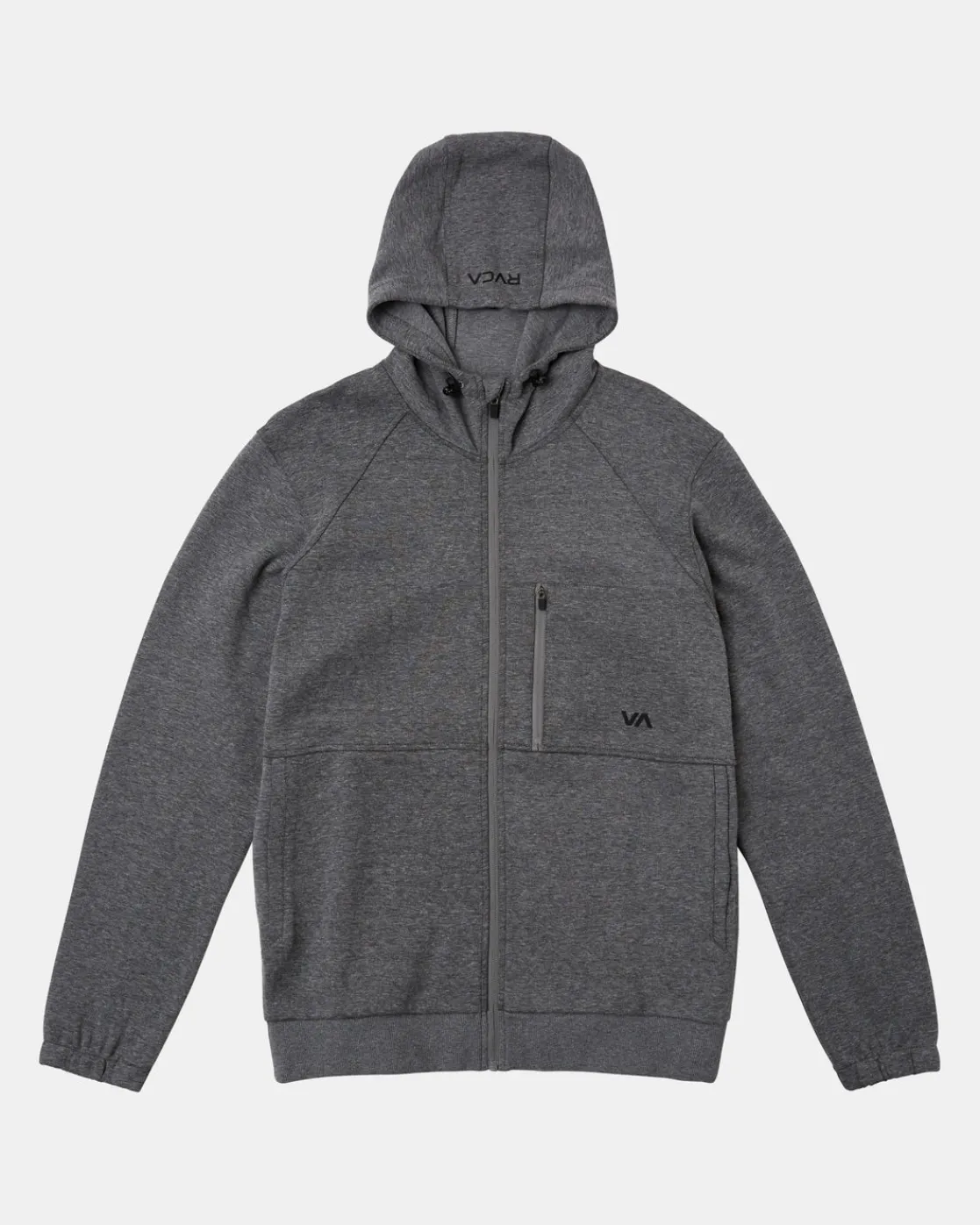 Go for solid comfort and solid vibes in the RVCA Tech Zip-Up Fleece Hoodie II. Made from soft cotton poly with fleece, this zip-up sweatshirt features an adjustable hood, long sleeves with elastic cuffs, ribbed hem, pockets throughout and VA Sport Collection branding. Featured here in the Heather Grey 2 colorway.