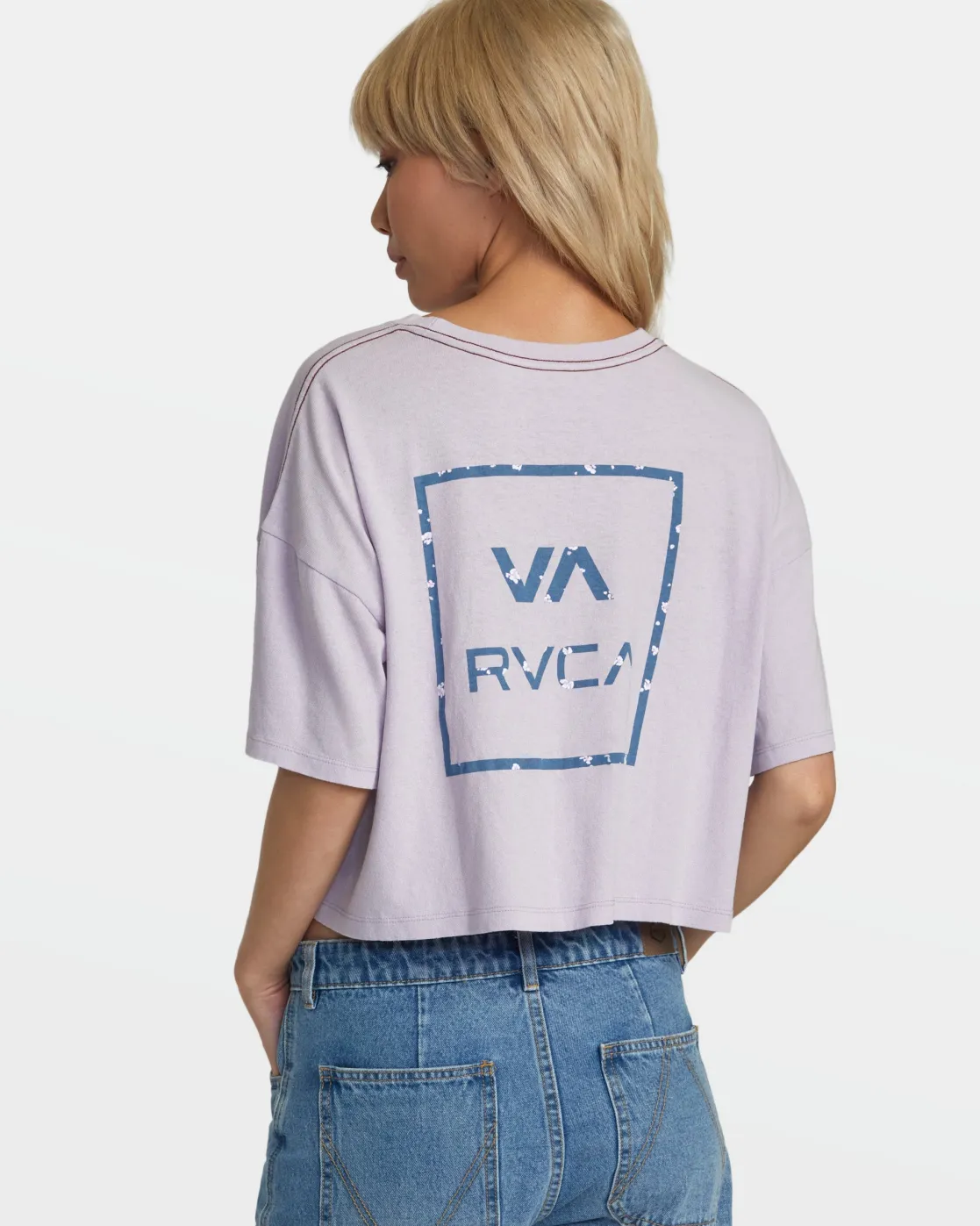 Crafted of loose-knit cotton jersey, the VA All The Way cropped and boxy tee may be laidback and simple but the RVCA graphics and pigment-dye coloring effect give it a vintage look and personality for any casual occasion. Featured here in the Pastel Lilac colorway.