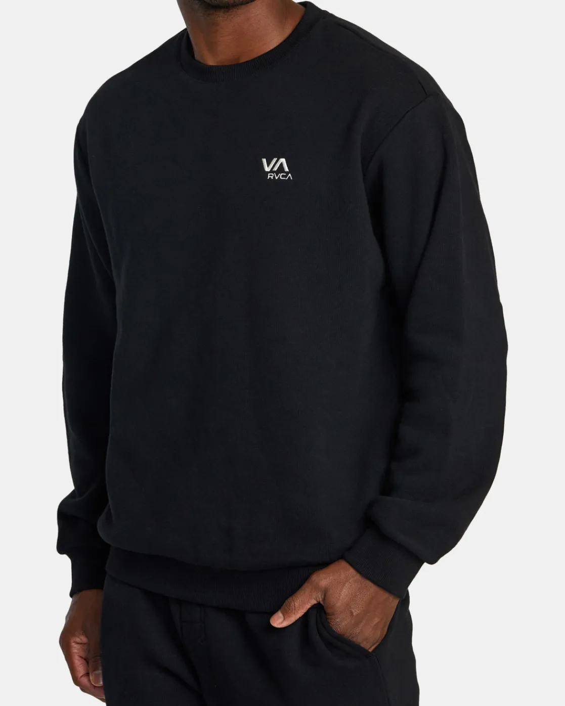 Crafted from combed cotton and French terry fabric for a premium soft feel, the RVCA VA Essential Crew Sweatshirt offers a relaxed fit with ribbed cuffs and a logo hit at the chest. Featured here in the Black colorway.